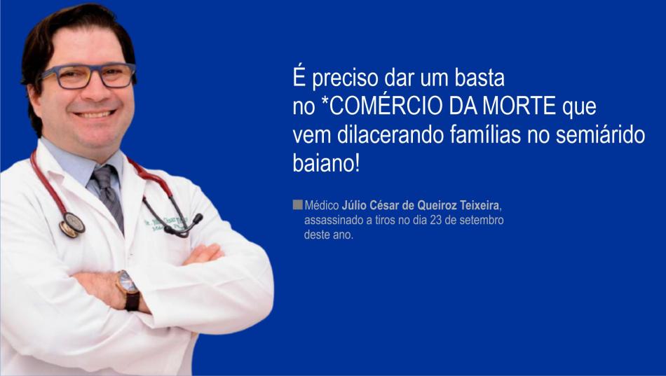 A família do médico Júlio César de Queiroz Teixeira, assassinado a tiros no dia 23 de setembro, enquanto atendia uma criança em uma clínica médica no município de Barra/BA, vem a público clamar às autoridades policiais e políticas do Estado da Bahia para que *não permitam que este caso vire mais um dos incontáveis “crimes de mando” insolúveis na região*.