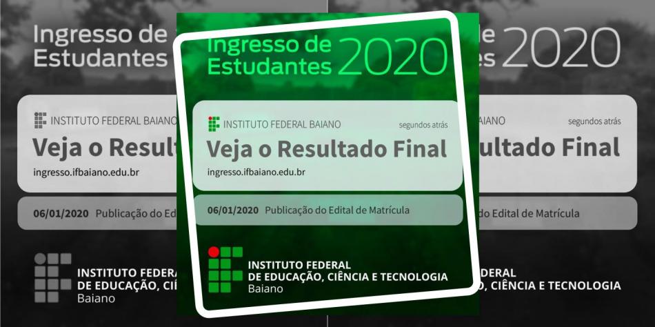 Já está disponível o resultado final do Processo Seletivo 2020 do IF Baiano - Campus Xique-Xique para ingresso nos Cursos Técnicos Subsequentes e Integrados ao Ensino Médio.