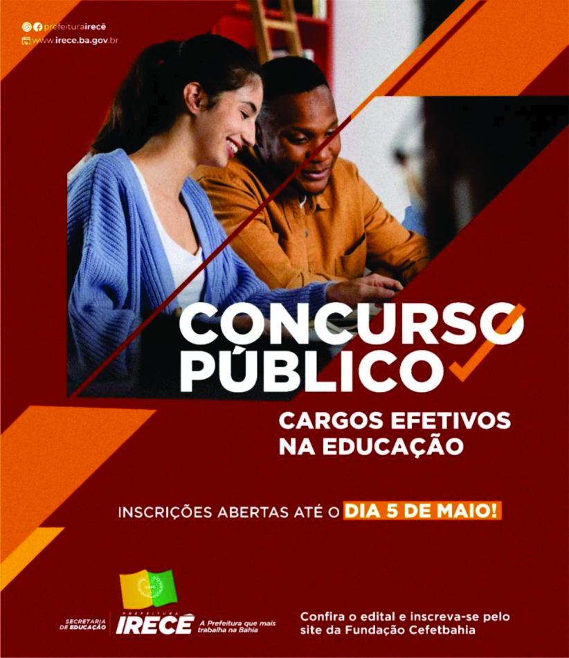 A Prefeitura de Irecê divulga dois Concursos Públicos com oportunidades para profissionais do ensino superior