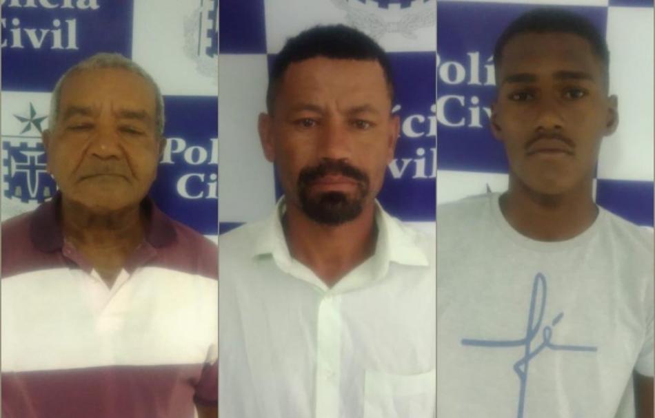Equipes da Delegacia de Homicídios de Feira de Santana (DH/Feira) cumpriram os mandados de prisão preventiva de três envolvidos no homicídio de Leandro dos Santos Adorno, na quinta-feira (11), naquela cidade. Conforme as investigações, o avô da vítima, Antônio Dionísio Correia dos Santos é o mandante do crime, ocorrido em outubro de 2018, no distrito de Ipuaçu.