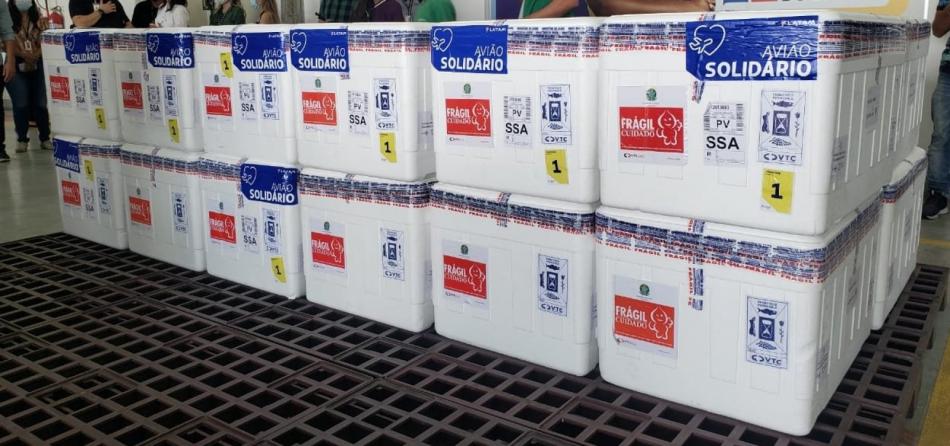 Desde o começo do plano de imunização no estado, a Bahia recebeu nesta segunda-feira (3) o maior carregamento de vacinas da Astrazeneca/Oxford.