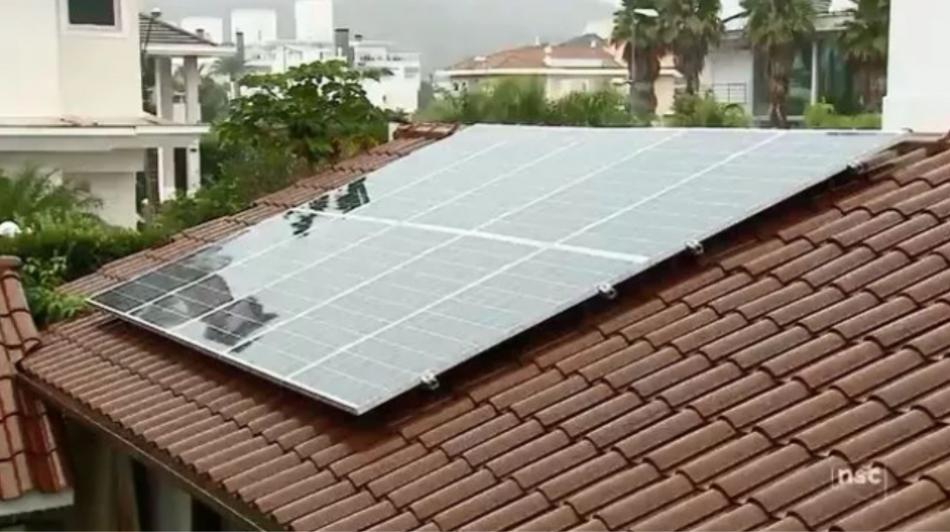 Placas de energia solar instaladas em telhado de casa em SC — Foto: Reprodução/NSC TV.