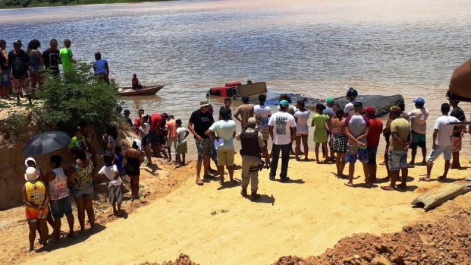 Caminhão ficou submerso no Rio São Francisco durante travessia.