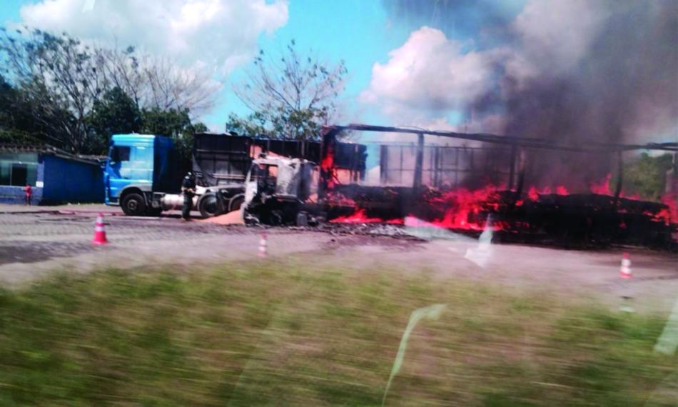 Carreta pega fogo em posto de combustíveis da BR-116 Sul, no trecho de Feira de Santana