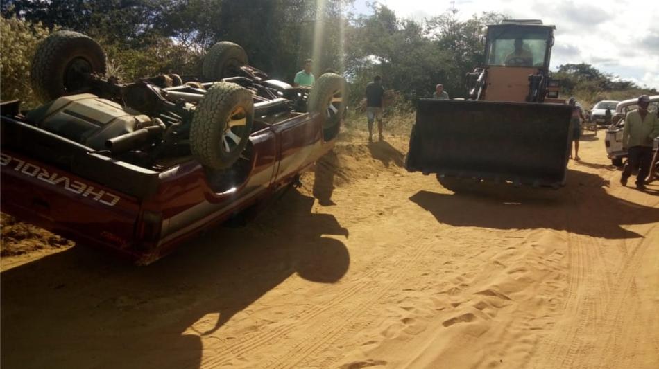 Ainda neste domingo (21), o comerciante Liu, dono de uma autopeças em Gentio do Ouro escapou ileso de outro acidente. Ao trafegar por uma estrada vicinal que liga a sede do Município ao povoado de Baixa Grande, o seu carro (D-20) descontrolou-se quando o capô abriu, e tombou.