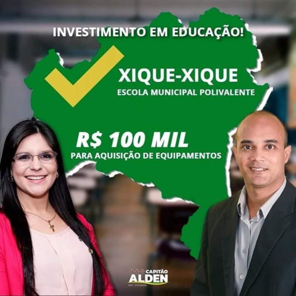 Através de uma emenda parlamentar da deputada Federal Professora Dayane Pimentel, e por indicação do deputado estadual Capitão Alden, a Escola Municipal Polivalente de Xique-Xique, receberá 100 mil reais, para aquisição de equipamentos e computadores. Se bem empregados, será uma das escolas com a melhor estrutura tecnológica da cidade, o que repercutirá na aprendizagem dos alunos.