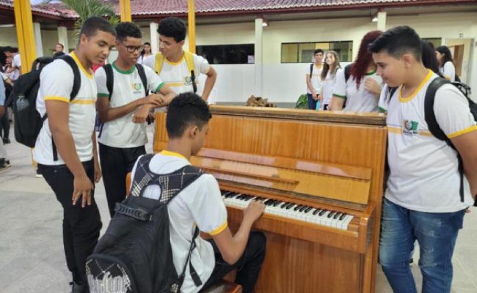 Cerca de 250 crianças e adolescentes da Escola Municipal Odete Nunes Dourado, de Irecê (Bahia), terão a oportunidade de participar, ao longo do ano letivo, de aulas semanais de teatro, desenho, teoria musical, piano, violão, violino e canto oferecidas por meio do projeto Arte nas Escolas.