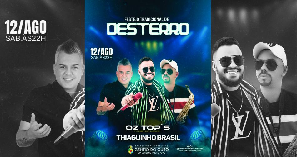 Shows: Thiaguinho Brasil, e Oz Top’s: 22:00h.