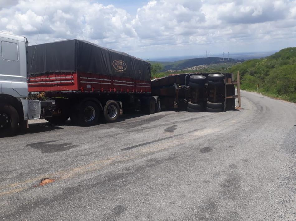 Gentio do Ouro: Carreta tomba na subida do Corte de Andarilho e causa fechamento parcial de pista