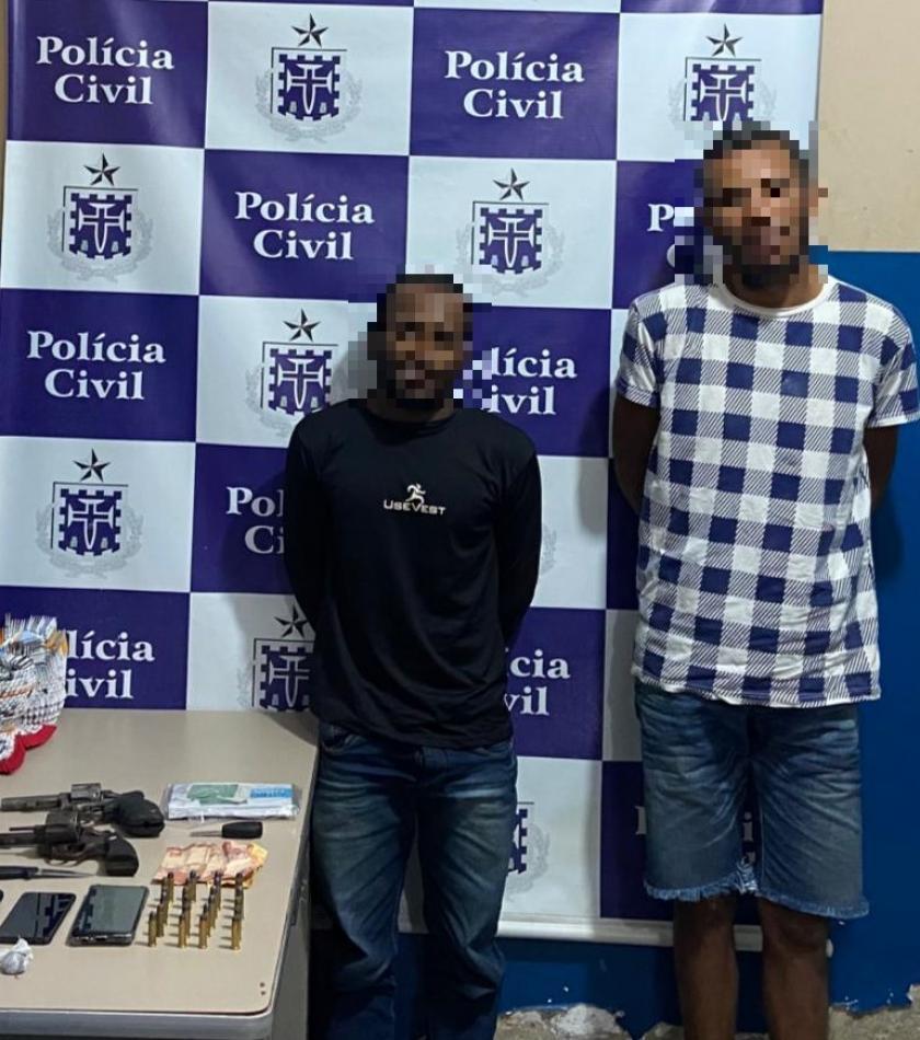 Conforme informações da polícia, foram apreendidos com os bandidos revólveres, celulares, faca, drogas e a quantia de R$ 50,00.