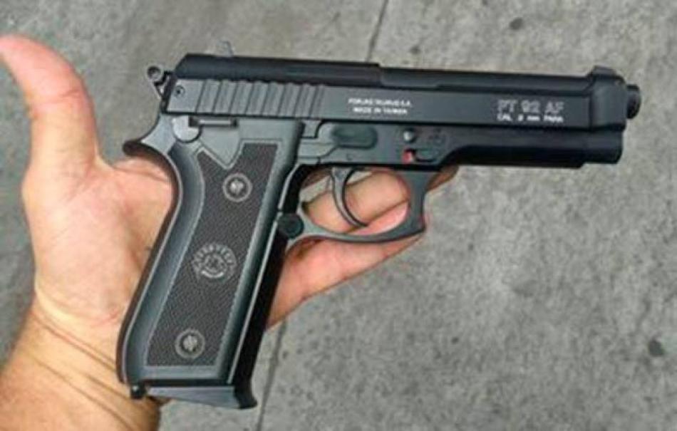 Os policias revistaram o suspeito e descobriram, no entanto, que a arma era um simulacro (réplica) de arma de fogo.
