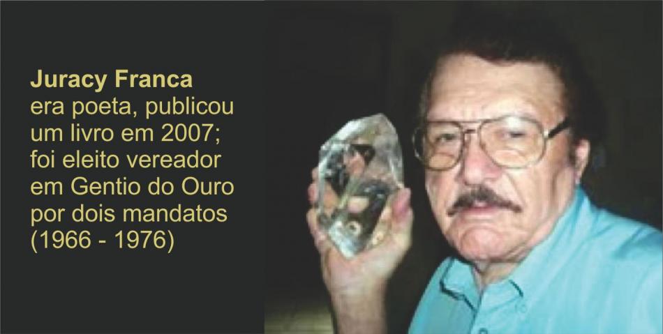 Juracy Franca era poeta, publicou um livro em 2007 - foi eleito vereador em Gentio do Ouro por dois mandatos (1966 - 1976)