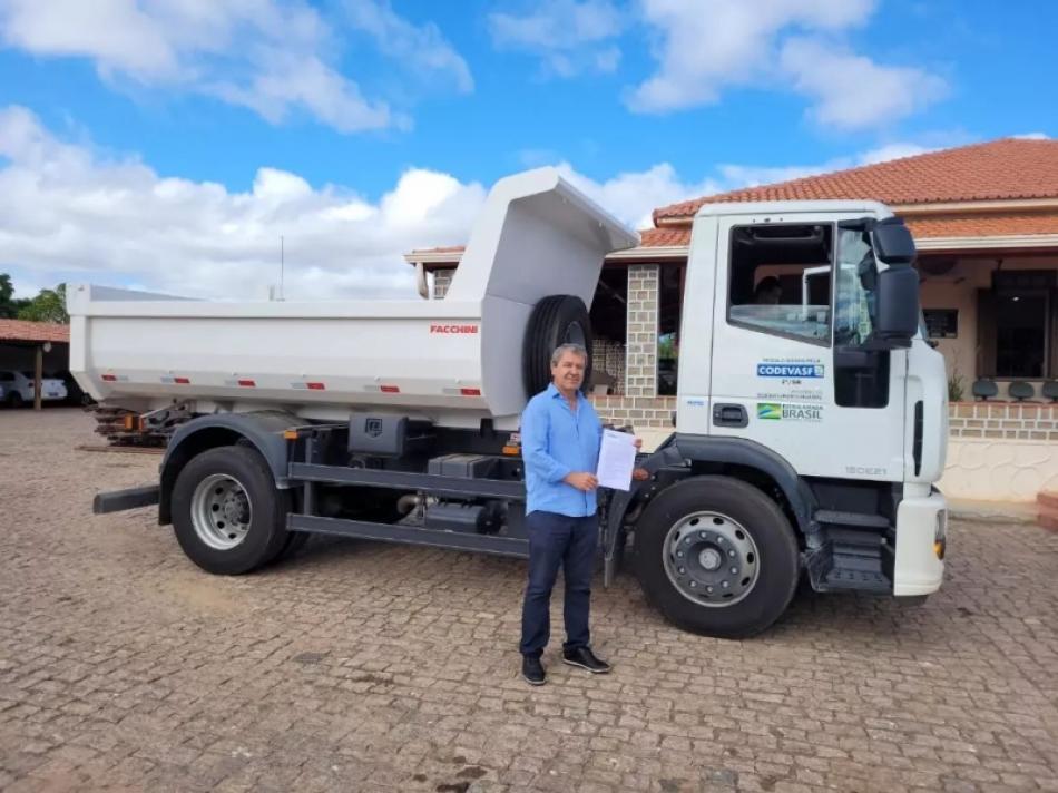 Gentio do Ouro: Prefeito Robério Cunha recebe uma nova caçamba na sede da Codevasf em Guanambi