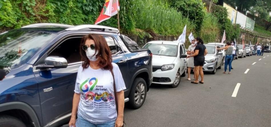 Desde então, a categoria luta para permanecer com o ensino retomo, tendo realizado até carreatas pedindo o recuo da medida *(foto).