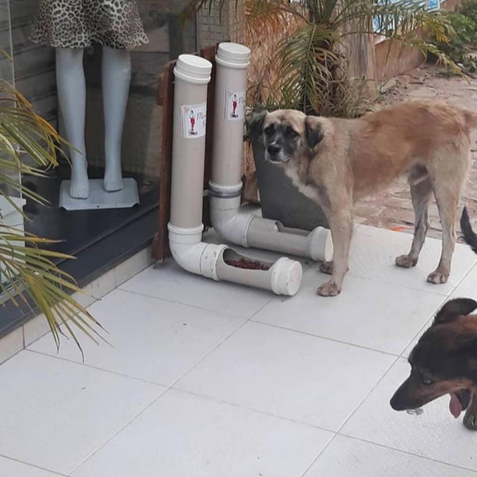 Em vídeo, a adaptadora dos comedouros explicou que sempre fica muito sensibilizada com o abandono de cães e gatos nas ruas. Ela conta que fez na própria frente da casa: “A lei permite que você faça isso, que você possa colocar um comedouro ou bebedouro na sua porta, não tem problema nenhum... As peças são acessíveis: meio metro de cano, uma curva, um joelho e a tampa, depois é só encaixar”, disse.
