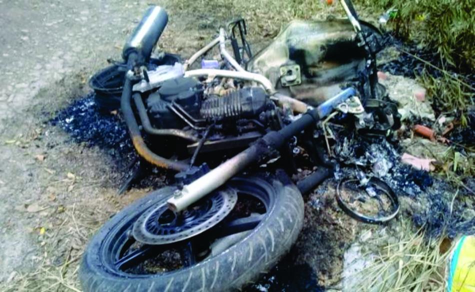 A situação ocorreu após os policiais receberem uma denúncia anônima sobre a presença de uma motocicleta queimada na área rural. Ao chegarem ao local indicado, os agentes confirmaram o fato: uma Honda/CB 300F Twister, ano 2023, estava totalmente destruída próximo a uma estrada vicinal.