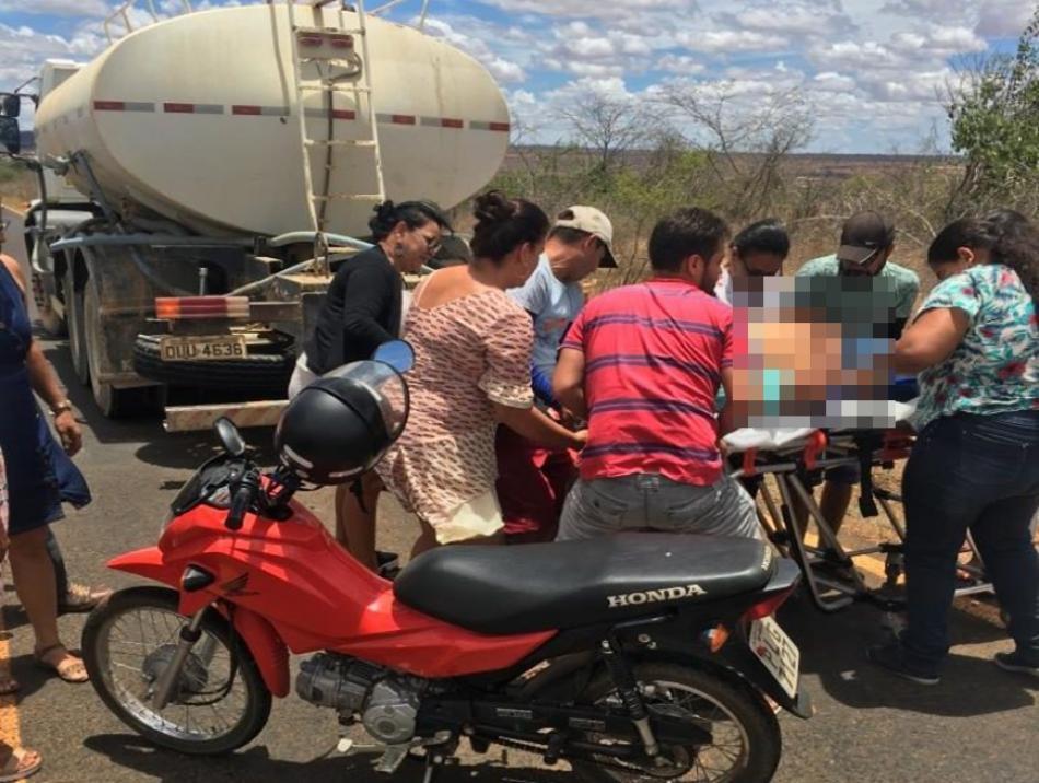 Uma motociclista de 32 anos ficou gravemente ferido após bater contra a traseira de um caminhão [que estava] parado, na tarde desta quinta-feira (31), na BA-148 – rodovia que interliga os municípios de São Gabriel e Jussara, na região de Irecê.