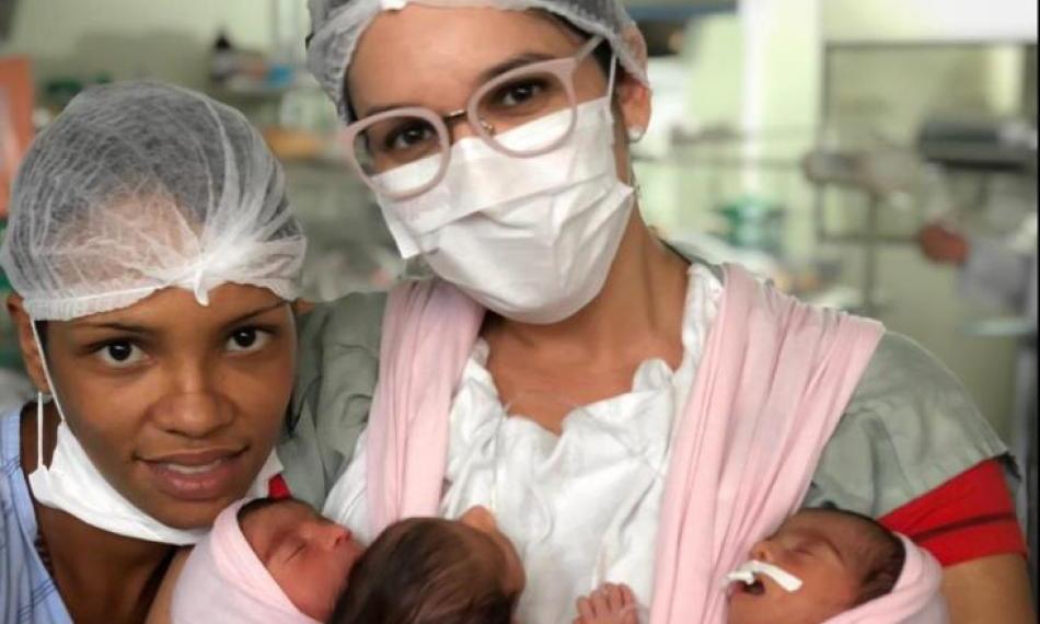 Dona de casa deu à luz trigêmeas de parto normal (10/2018), no Hospital Regional Dr° Mário Dourado Sobrinho, em Irecê.