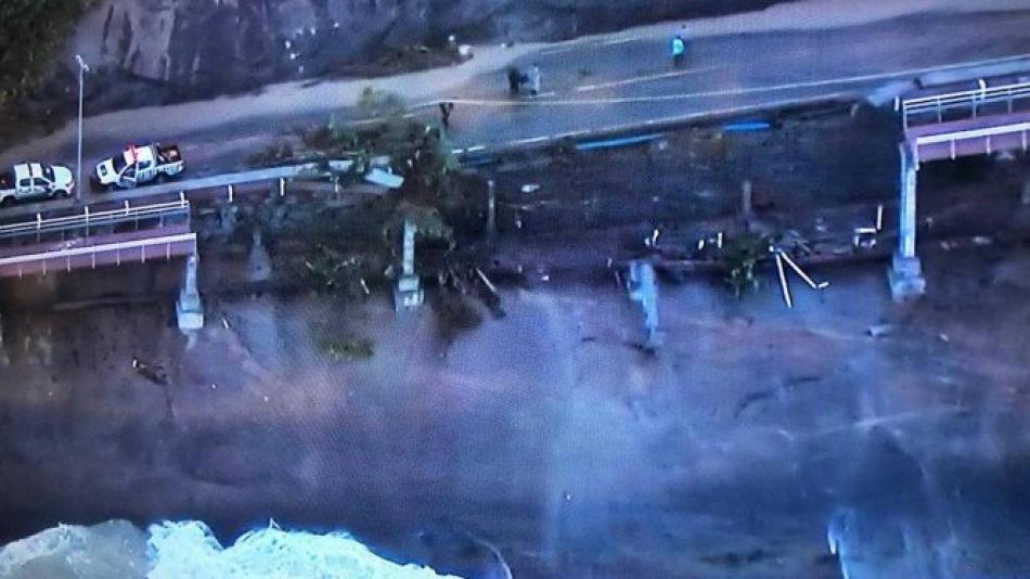 Parte da Ciclovia Tim Maia desaba após temporal no Rio Foto: Reprodução TV Globo.