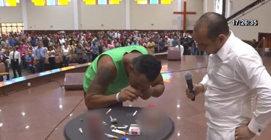 Pastor da IURD “testa” libertação de viciados com drogas durante o culto