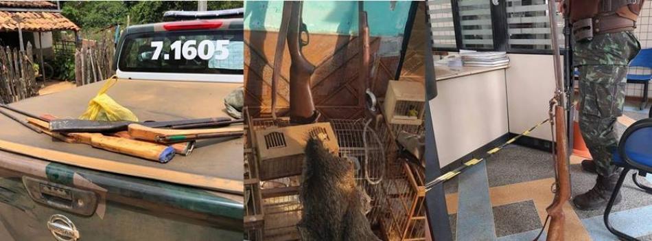 De acordo com a Polícia Ambiental, a equipe apreendeu um total de 07 espingardas. Ninguém foi preso.