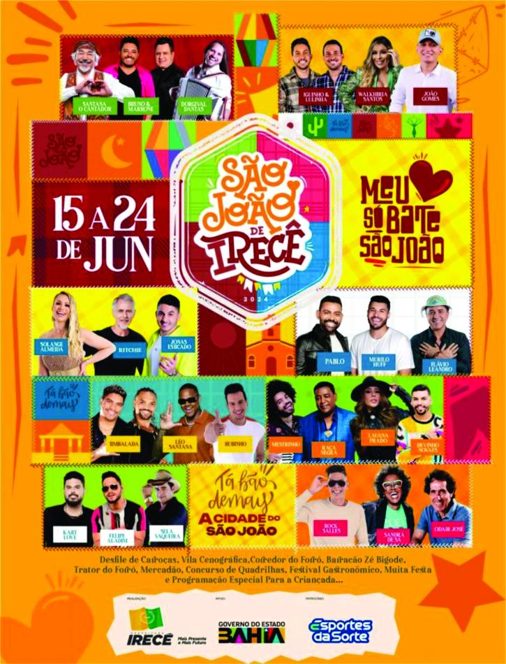 A notícia sacudiu a Bahia e Irecê já se prepara para receber milhares de turistas que escolheram a cidade como destino obrigatório nos festejos juninos. Marca registrada do Território, o São João de Irecê celebra a Cultura Nordestina, valoriza tradições do Sertão e movimenta o Comércio, a Rede Hoteleira e diversos setores da cadeia produtiva - gerando emprego e renda para milhares de pessoas. Apenas em 2023, as festividades atraíram mais de meio milhão de espectadores e geraram incremento de R$150 milhões na economia.