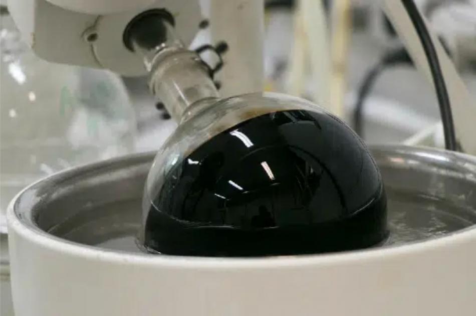 Líquido da casca de castanha de caju (LCC), resíduo industrial utilizado no experimento da pesquisa (Foto: Viktor Braga/UFC)