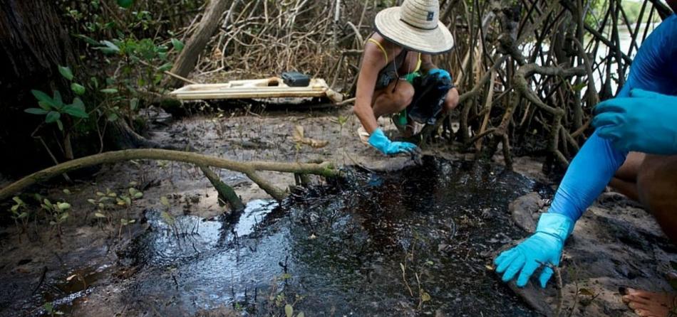 O manguezal do Rio Pojuca, na região da praia de Itacimirim, localizada no município de Camaçari, foi atingido por ao menos 800 kg do óleo que tem atingido o litoral nordestino.