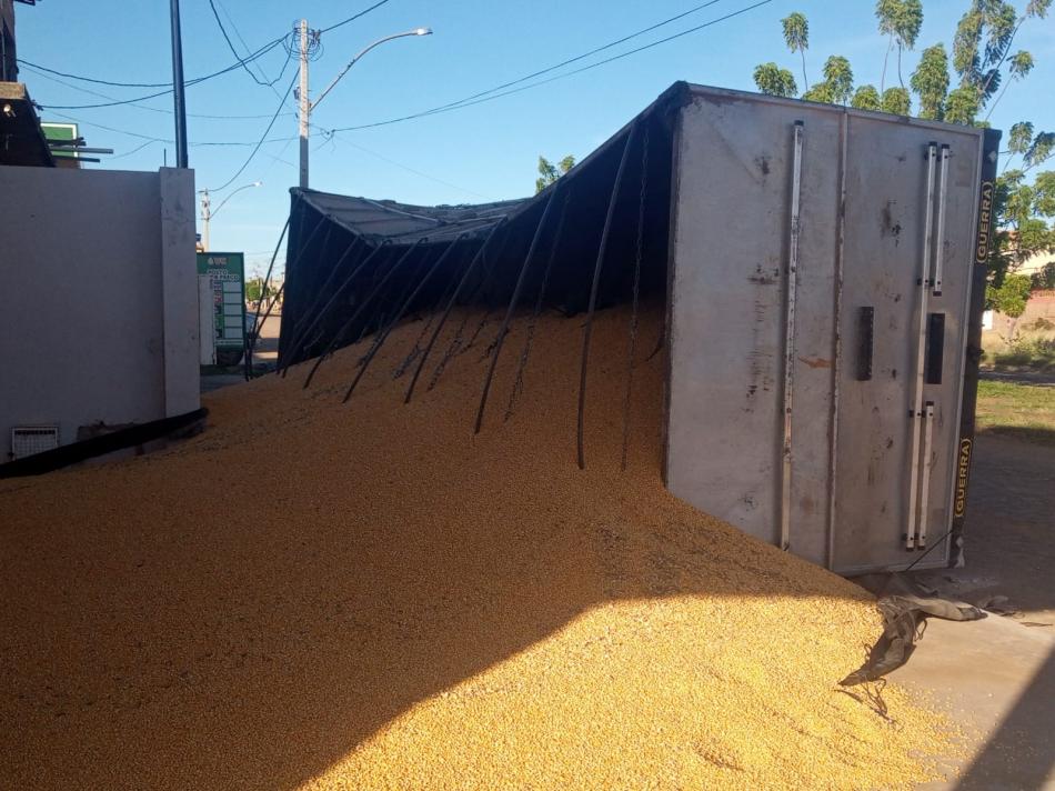 Semi-reboque com mais de 400 sacas de milho tomba em Xique-Xique (BA).