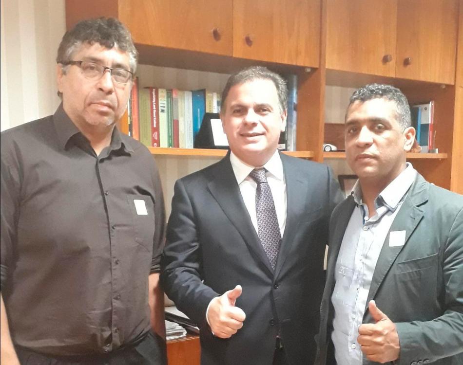 Da esq. para a dir.: Jeferson Meira, secretário de Relações do Trabalho da Contraf-CUT; o deputado federal João Carlos (PR-BA); e o presidente do Sindicato, Eduardo Araújo.